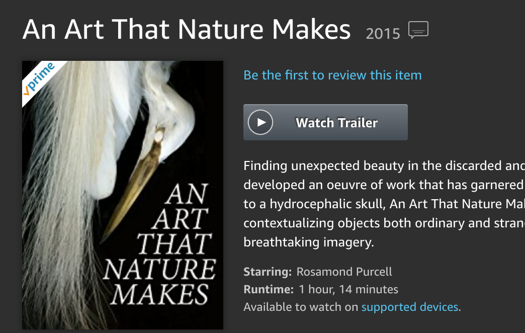 AN ART THAT NATURE MAKES: THE WORK OF ROSAMUND PURCELL is now available for streaming on Amazon Prime!